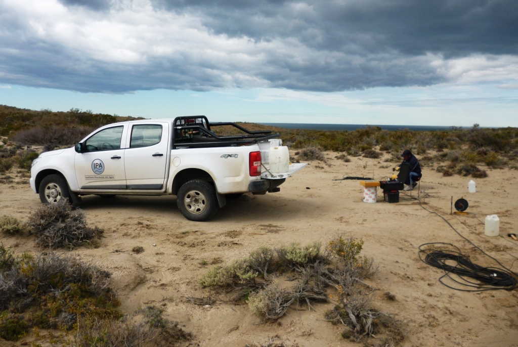 El Instituto Provincial del Agua (IPA) realizó relevamientos hidrogeológicos de aguas subterráneas en la zona cercana a Caleta Córdova, en el marco del trabajo que está realizando la Administración de Vialidad respecto a la definición de la traza de la Ruta Nº 1 que unirá a Comodoro Rivadavia con Camarones.