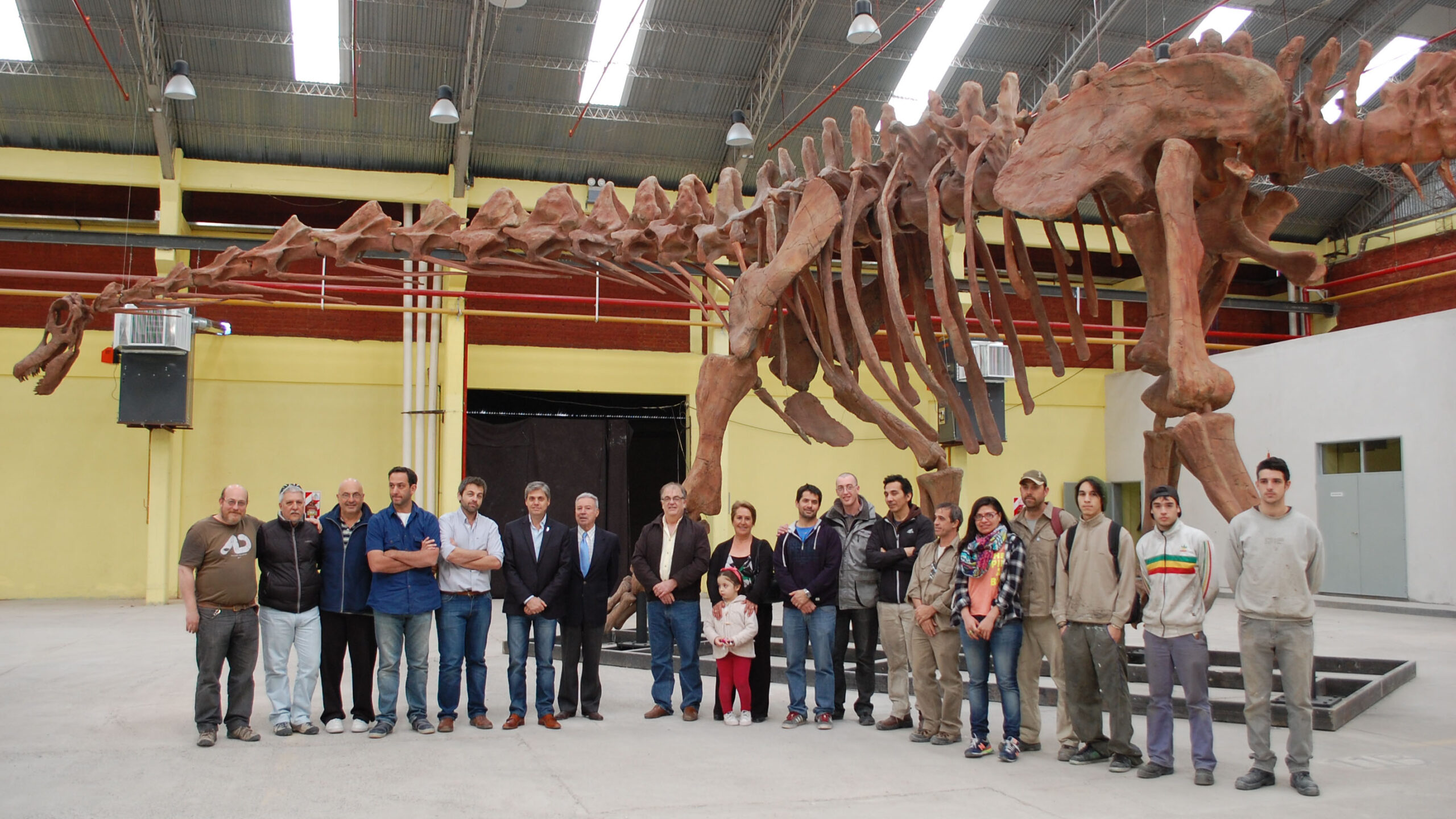 Con apoyo del Gobierno de la Provincia, se presentó este mediodía, en el predio inaugurado recientemente por el gobernador Buzzi, la primera réplica del dinosaurio más grande del mundo cuyos fósiles fueron hallados en Chubut. Demandó una inversión de 2 millones de pesos que se financió conjuntamente entre el Gobierno de la Provincia y la Fundación Museo Egidio Feruglio. “Es un sueño cumplido porque lo planificamos hace más de un año, cuando viajamos a Gales con el gobernador Martín Buzzi y el director del Museo, Rubén Cúneo. También en esa misma gira diagramamos la actuación de la Orquesta de la BBC que se presenta esta noche”, dijo el secretario de Turismo y Áreas Protegidas del Chubut, Carlos Zonza Nigro.