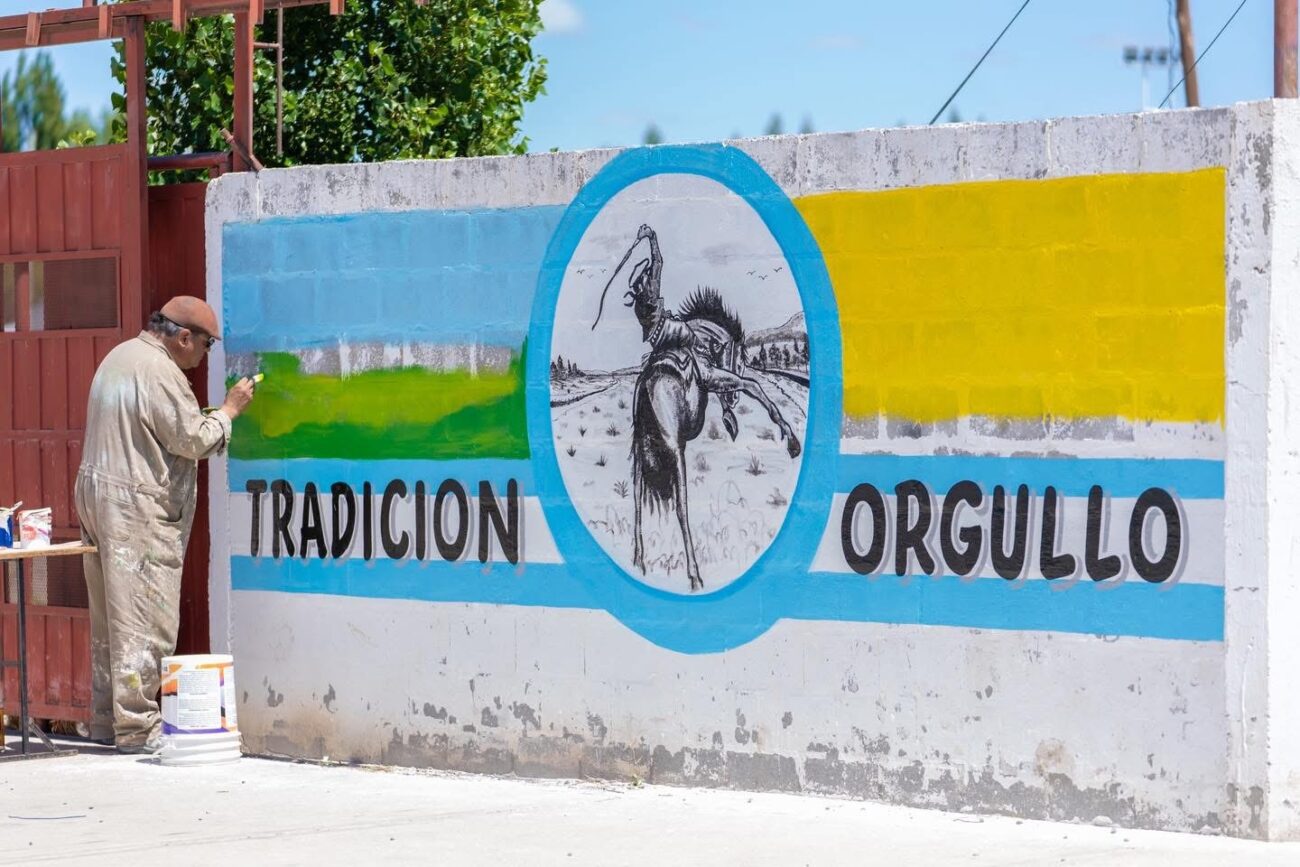 En el marco de los preparativos para el 51° Festival Interprovincial de Doma y Folklore, que se desarrollará los días 13, 14 y 15 de febrero en Sarmiento, el Club Social y Deportivo Sarmiento puso en valor un aporte artístico que ya forma parte del predio del evento.