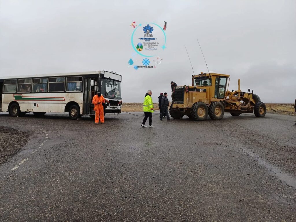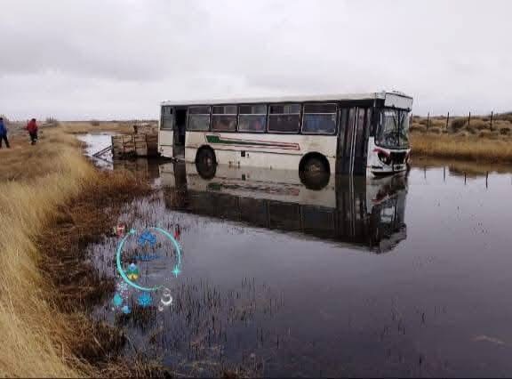 Un colectivo que trasladaba a trabajadores de la máquina esquiladora “El Arbolito” estaba siendo remolcado por una máquina vial debido a problemas mecánicos. Sin embargo, la motoniveladora sufrió una falla en los frenos y terminó arrastrando al ómnibus hasta dejarlo dentro de una laguna de agua, con sus 12 ocupantes en el interior.