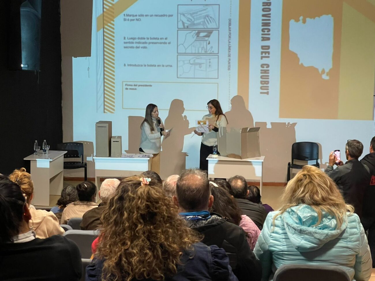 La actividad estuvo a cargo de las Diputadas Provinciales Ab. Paulina Hogalde y Ab. Andrea Aguilera, quienes explicaron el procedimiento de votación, los beneficios de este nuevo formato y despejaron dudas de los presentes.