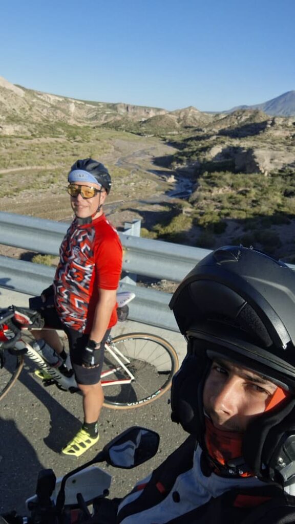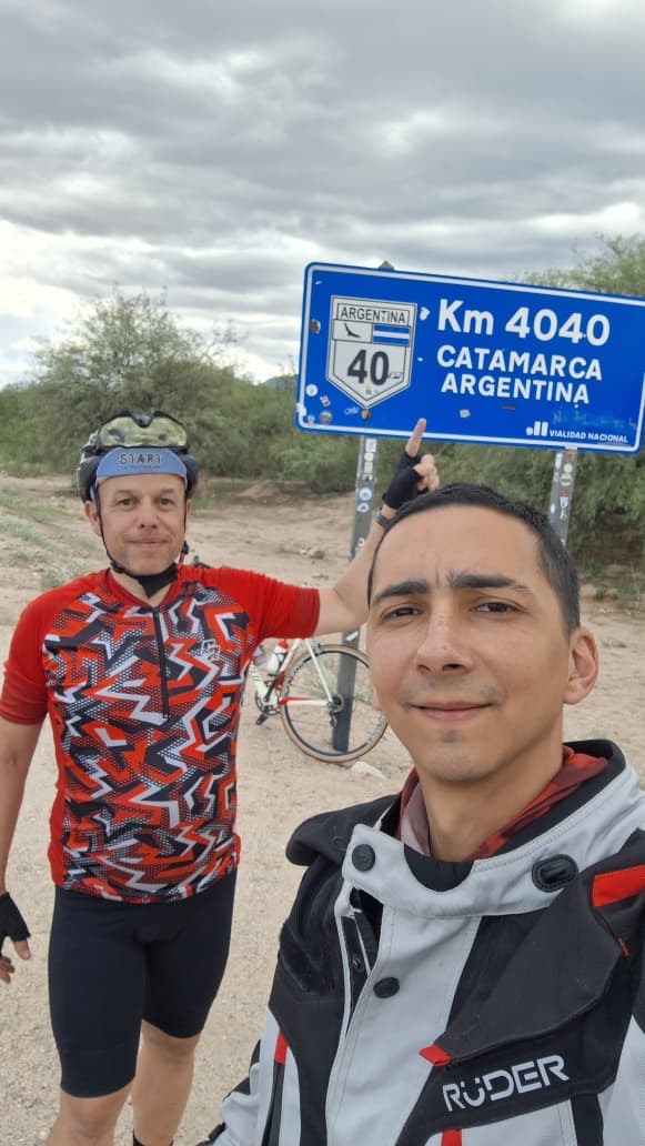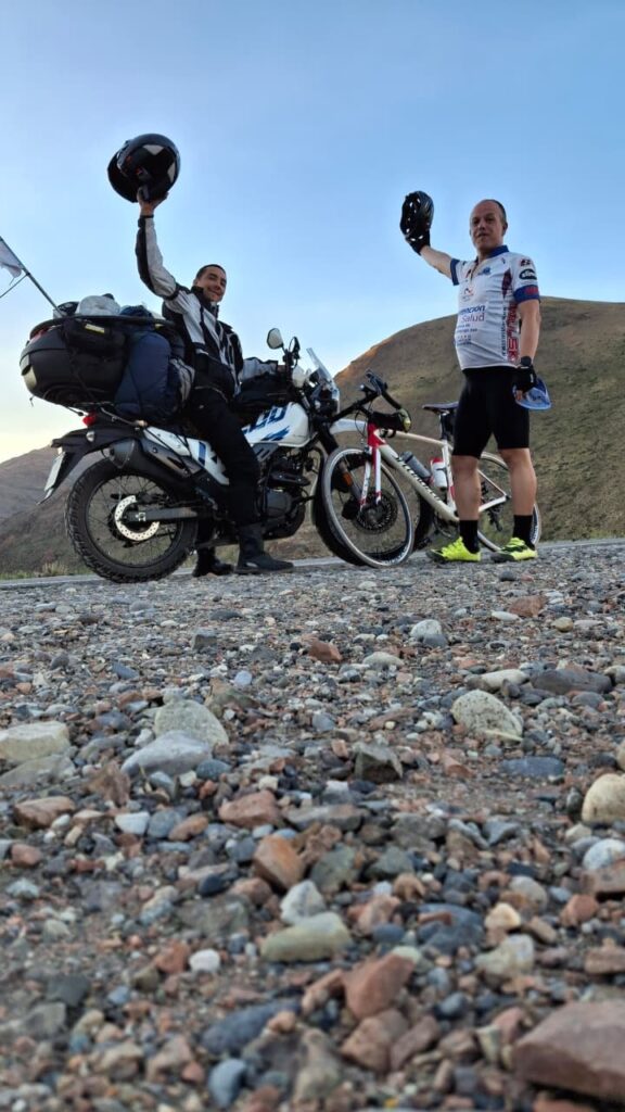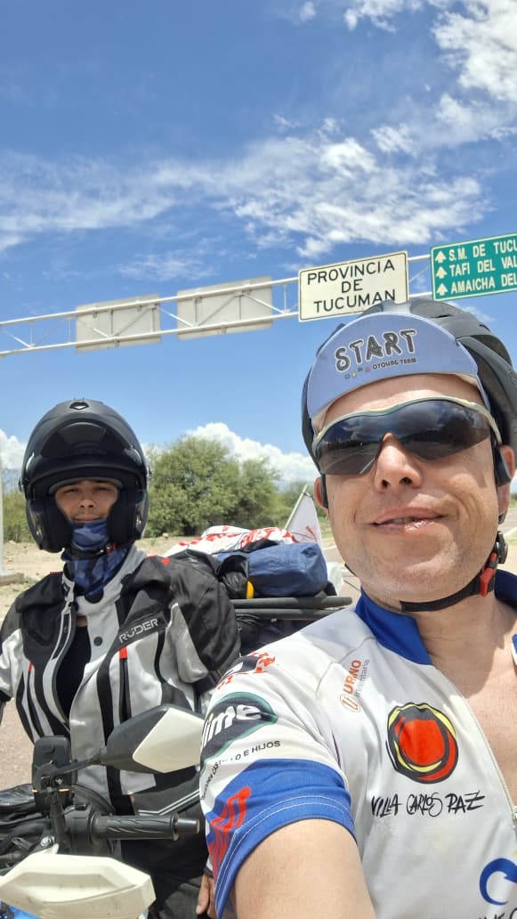 El desafío comenzó el 1º de enero y hoy tiene nombres propios. Haroldo Perrone, de 51 años, es quien realiza el recorrido en bicicleta; Jerónimo Sánchez lo acompaña en moto, cumpliendo tareas de asistencia, logística y comunicación. Ambos son oriundos de Río Cuarto y concibieron esta travesía no como una competencia deportiva ni como una aventura turística, sino como una experiencia diseñada desde el desarrollo personal y el trabajo en equipo.
