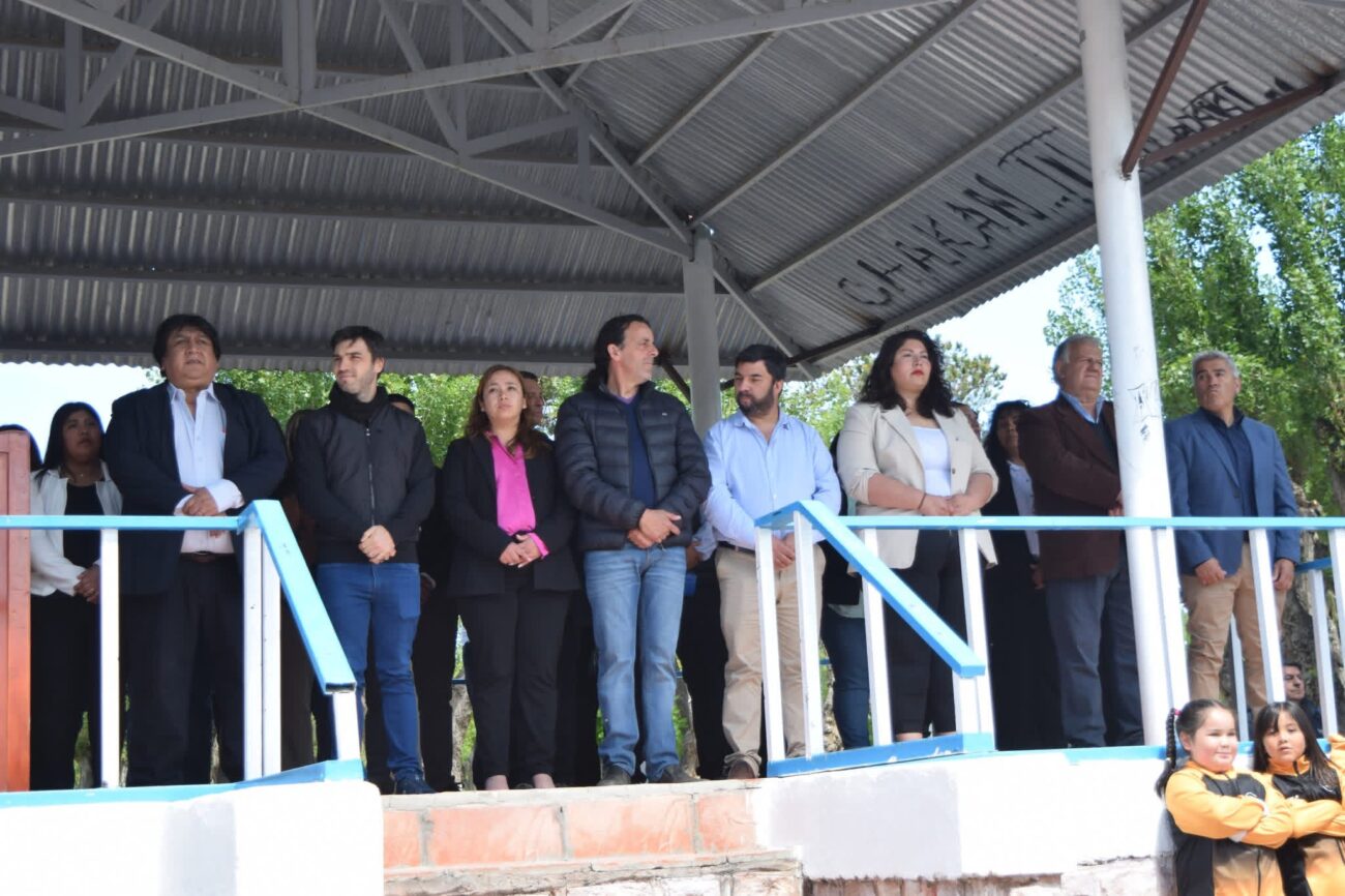 El mandatario local, Gustavo Loyaute, acompañó a su par Rubén Calpanchay durante los actos centrales por el 124° aniversario de la localidad de José de San Martín, que contó con la presencia del gobernador del Chubut, Ignacio “Nacho” Torres, funcionarios provinciales, intendentes y presidentes comunales de distintas localidades del interior.