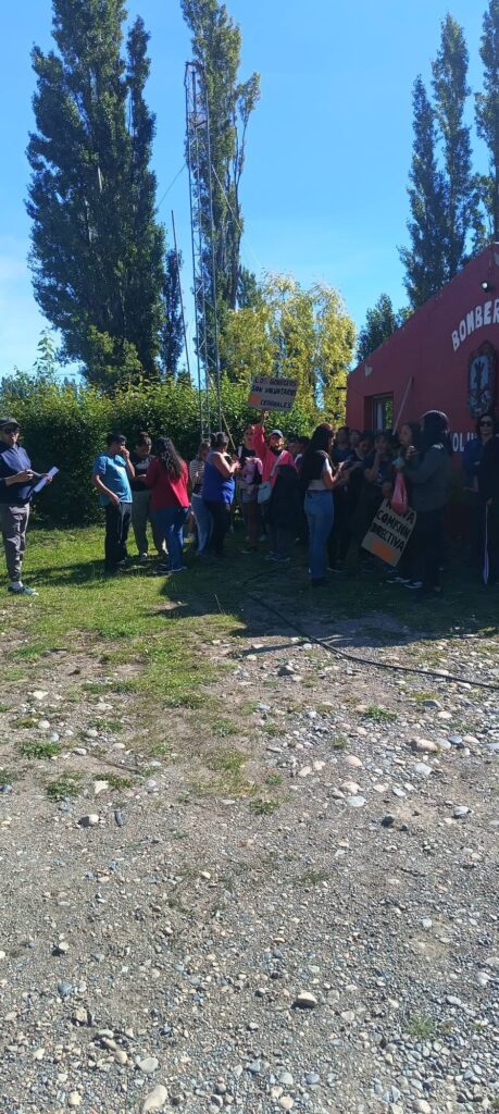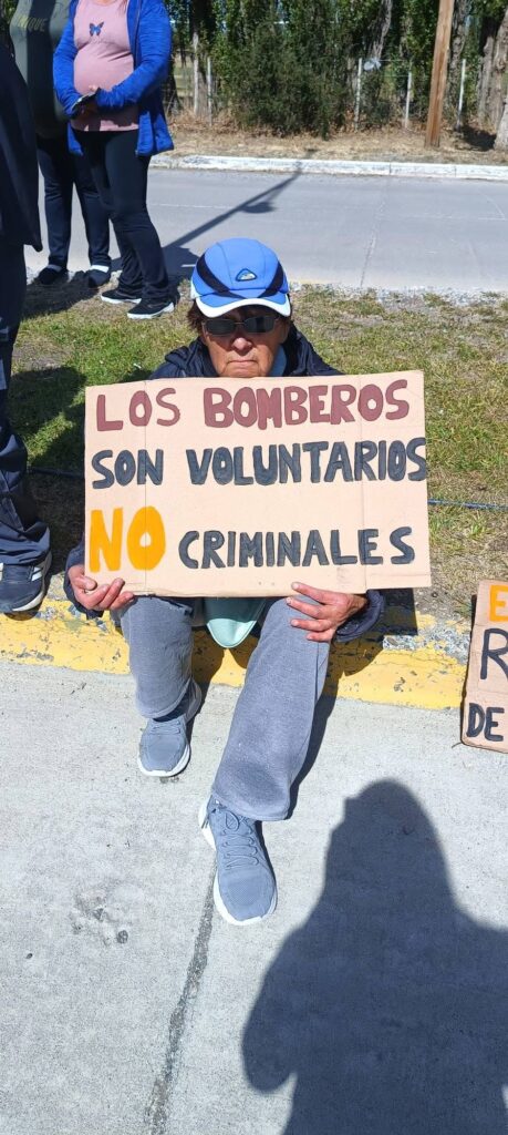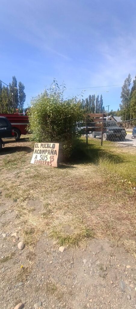 Mientras se desarrollaban las reuniones en el interior del cuartel, vecinos de la comunidad de Alto Río Senguer se acercaron al edificio de los Bomberos Voluntarios para acompañar y brindar su apoyo a los integrantes del cuerpo activo que habían sido apartados del servicio.
