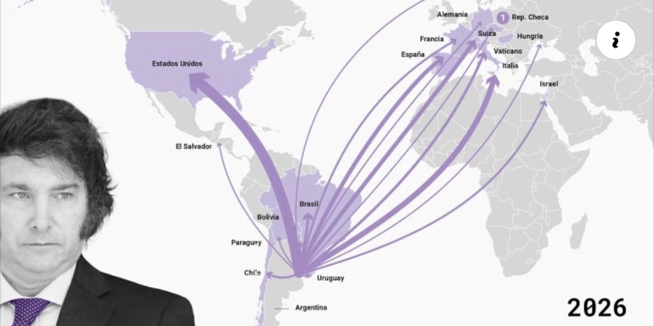 En términos geográficos, la política exterior muestra un sesgo claro. Estados Unidos concentra la mayor cantidad de visitas, seguido por destinos europeos como Italia, España y Suiza. En contraste, América Latina tuvo un lugar mucho más reducido en la agenda presidencial, mientras que regiones como Asia o Medio Oriente aparecen de forma marginal. No es un dato neutro: refleja prioridades políticas y también una redefinición del posicionamiento internacional de Argentina.