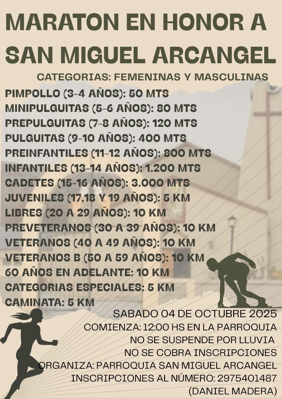 La organización está a cargo de la Parroquia San Miguel Arcángel y la inscripción es totalmente gratuita. Desde la organización aclararon que el evento no se suspende por lluvia, garantizando así la realización de esta fiesta deportiva.