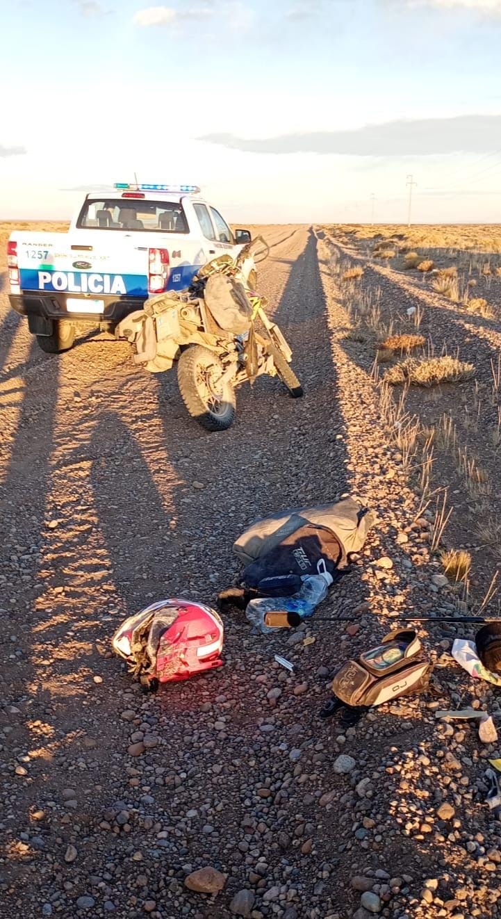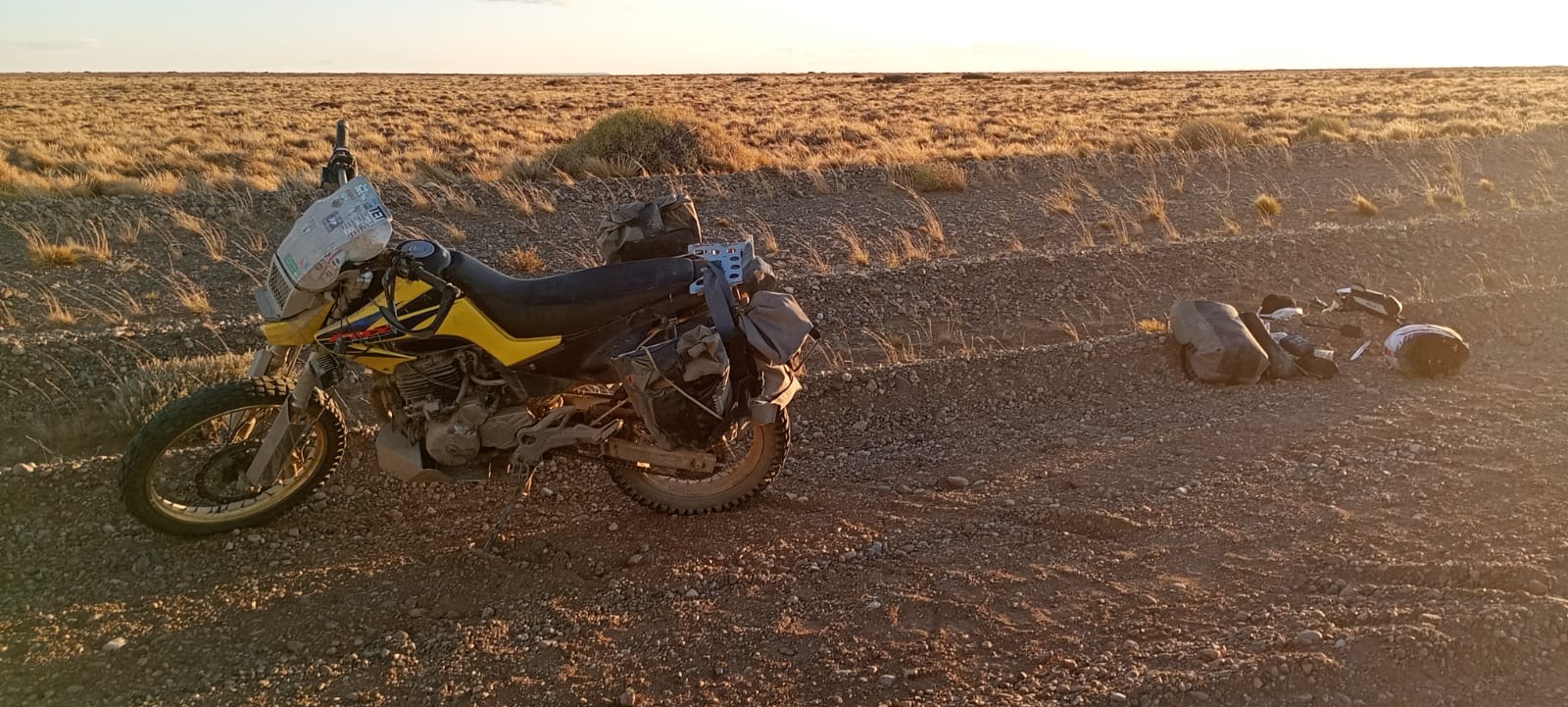Motociclista italiano sufrió un despiste en la Ruta Provincial N° 74 a 15 kilómetros de Río Mayo