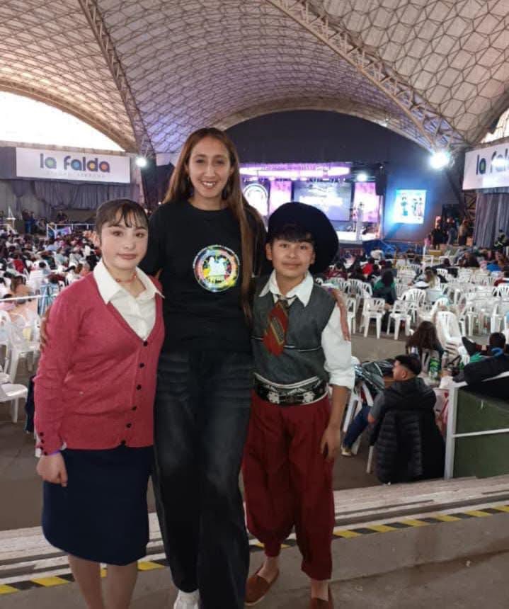 «Este año convoqué a cuatro niños de la localidad: tres que están cursando el profesorado en danzas y uno que asiste al taller. Fuimos a un preselectivo del certamen ‘Pequeños y Grandes Artistas’ que se realizó en Comodoro Rivadavia. De ese grupo, clasificó la pareja tradicional menor compuesta por Jon Figueroa y Yamila Silva, quienes finalmente pudieron viajar a Córdoba para participar del nacional».