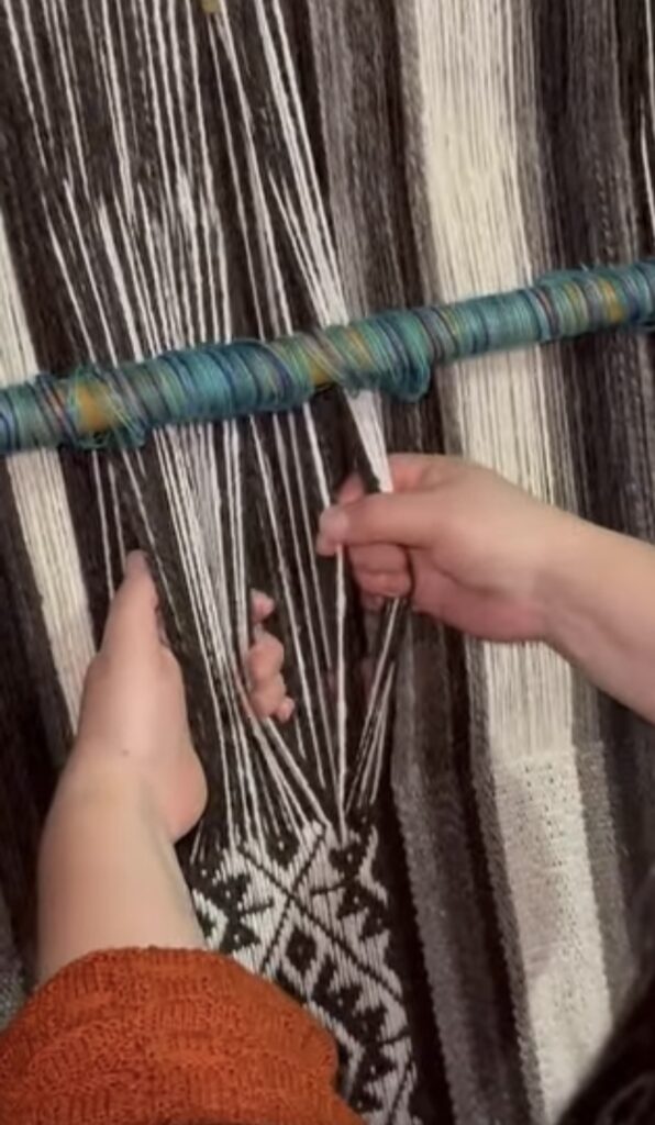 Cuando se sienta frente al telar, el silencio se llena de ritmo.