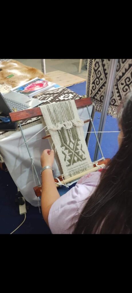 Allí presentó piezas elaboradas en telar ancestral, reafirmando la presencia del sur profundo en una de las ferias más prestigiosas del país.