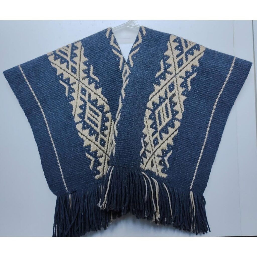 Las ruanas, ponchos y fajas que salen de su telar son tejidas tanto con lana natural de oveja como con lana sintética, según la pieza, el diseño y el propósito.