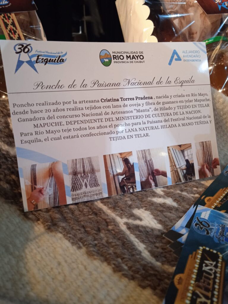 Además, es la artesana responsable de confeccionar el poncho que distingue a la Paisana Nacional de la Esquila, elaborado con lana hilada a mano y tejida en telar mapuche, prenda que simboliza la unión entre tradición y pertenencia.