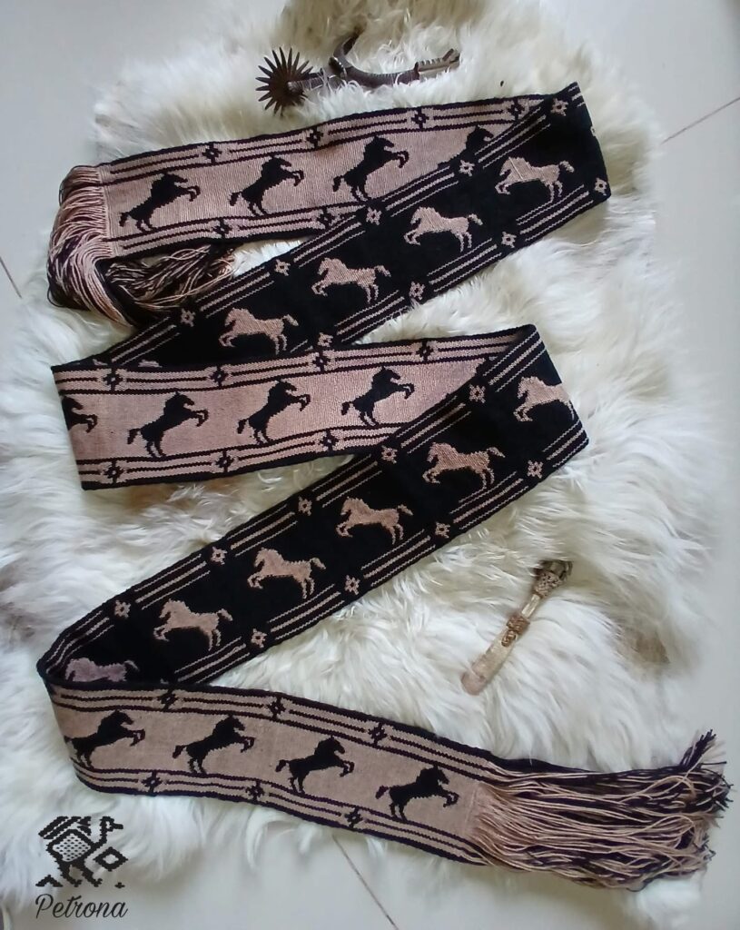 José, que también enseñó su oficio en talleres de la Casa de la Cultura de Río Mayo, complementa con su arte el universo textil de su compañera.