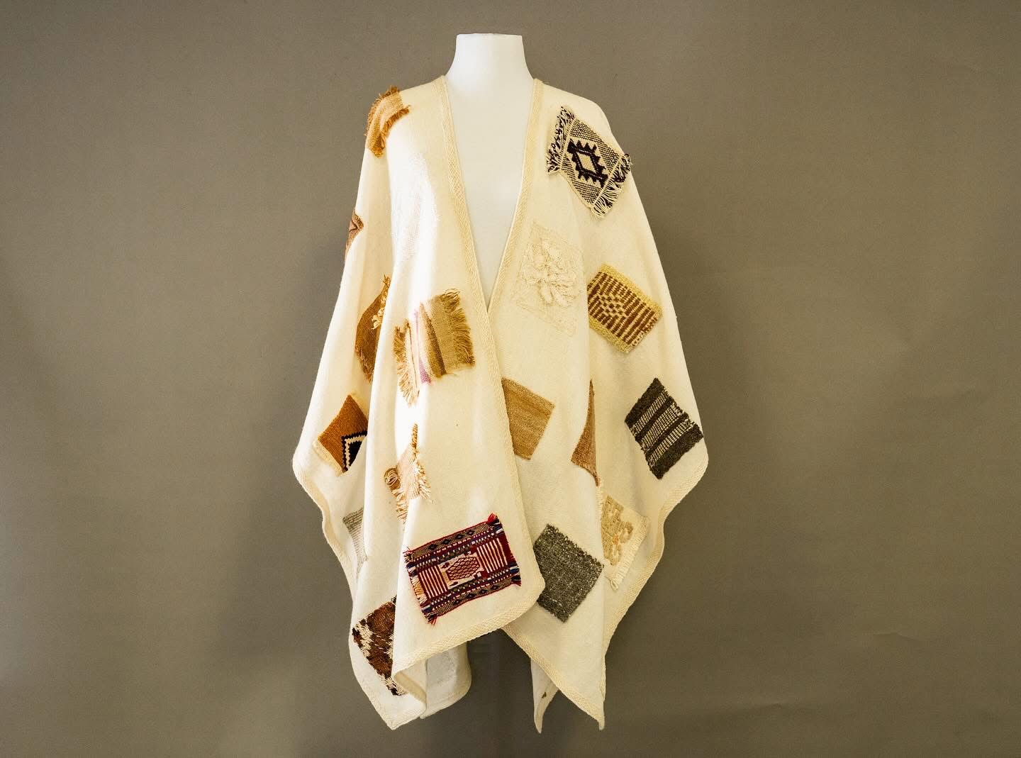Su ruana tejida en telar ancestral, trabajada con lana natural y sintética, fue destacada por su precisión técnica y su simbolismo patagónico.