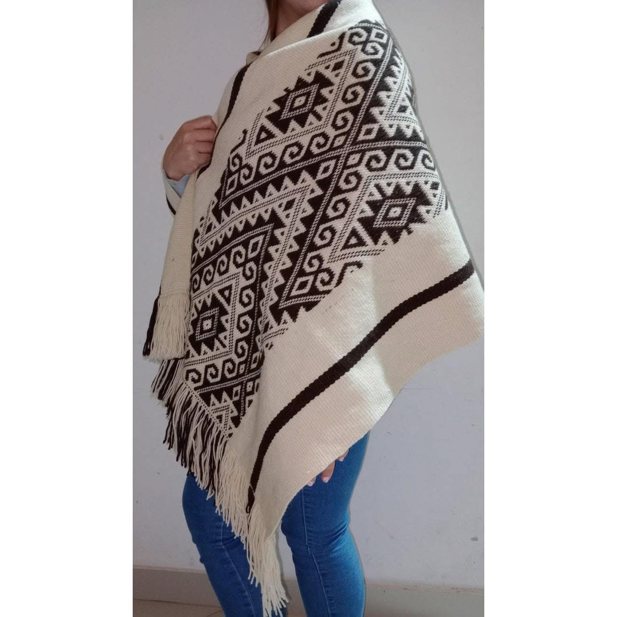 Las ruanas, ponchos y fajas que salen de su telar son tejidas tanto con lana natural de oveja como con lana sintética, según la pieza, el diseño y el propósito.
