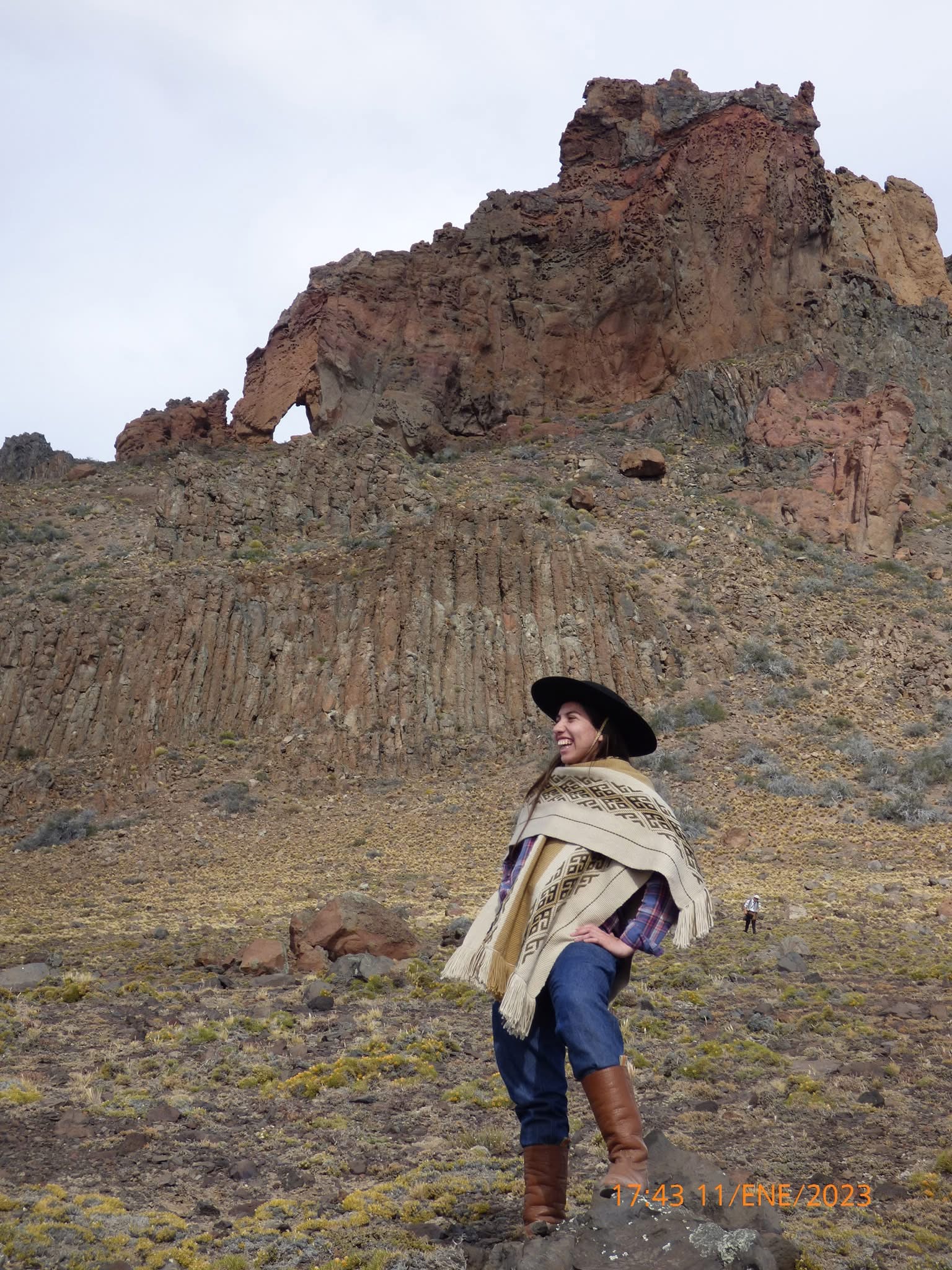 Por eso su poncho patagónico, tejido en pleno invierno, resume todo: