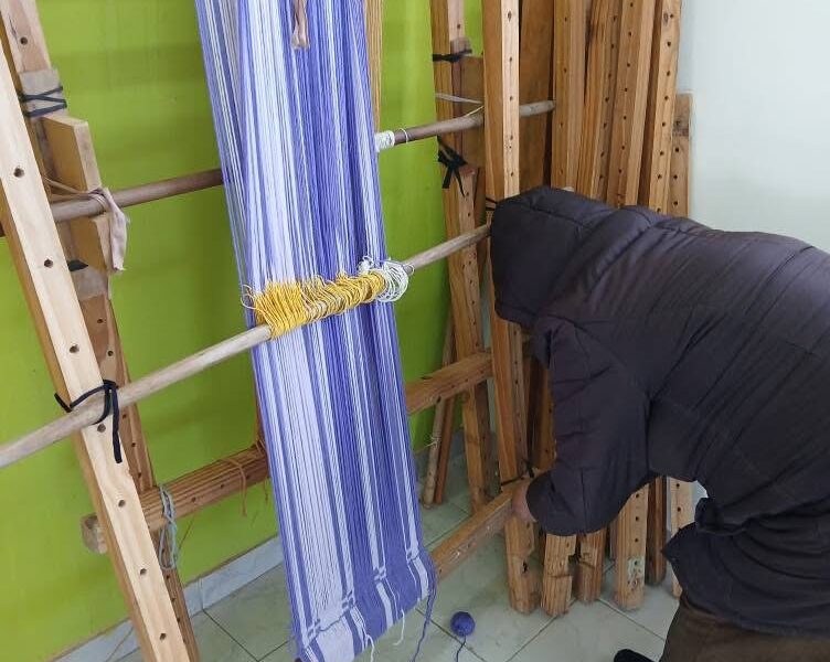 Cuando se sienta frente al telar, el silencio se llena de ritmo.