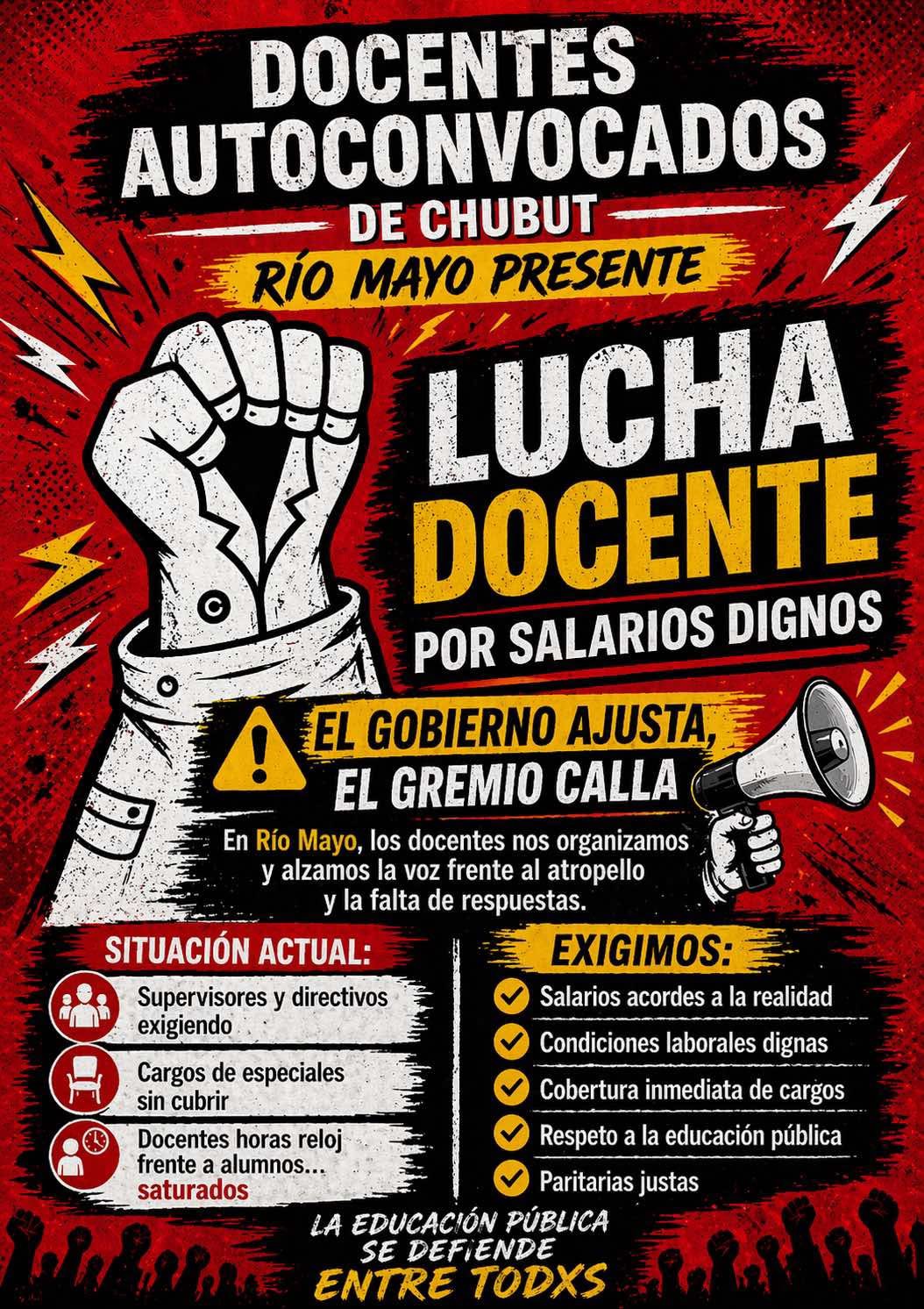 En Río Mayo, lo que se empieza a ver es una docencia que se corre de los carriles habituales y decide hablar por sí misma. El planteo es básico, pero contundente: recomposición salarial real, cobertura de cargos y condiciones de trabajo que no dependan de la buena voluntad de quienes están adentro del aula.