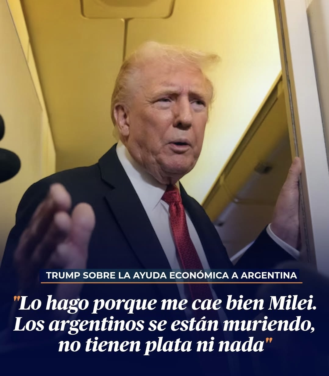 El presidente de los Estados Unidos, Donald Trump, afirmó este domingo que los argentinos “están muriendo, están luchando por sus vidas” al referirse a la situación económica que atraviesa el país. Durante una conferencia de prensa a bordo del Air Force One, señaló que la Argentina “no tiene dinero, no tienen nada, están luchando fuerte para sobrevivir… si puedo ayudarlos a sobrevivir en un mundo libre…”.