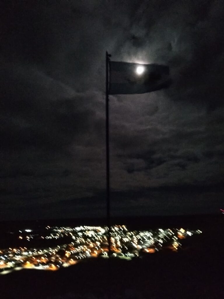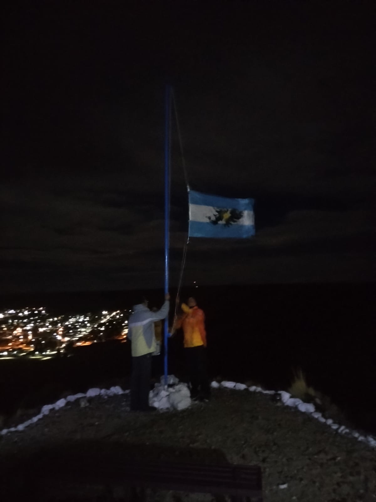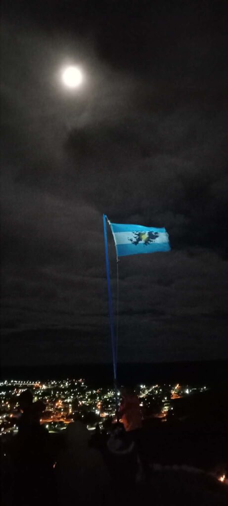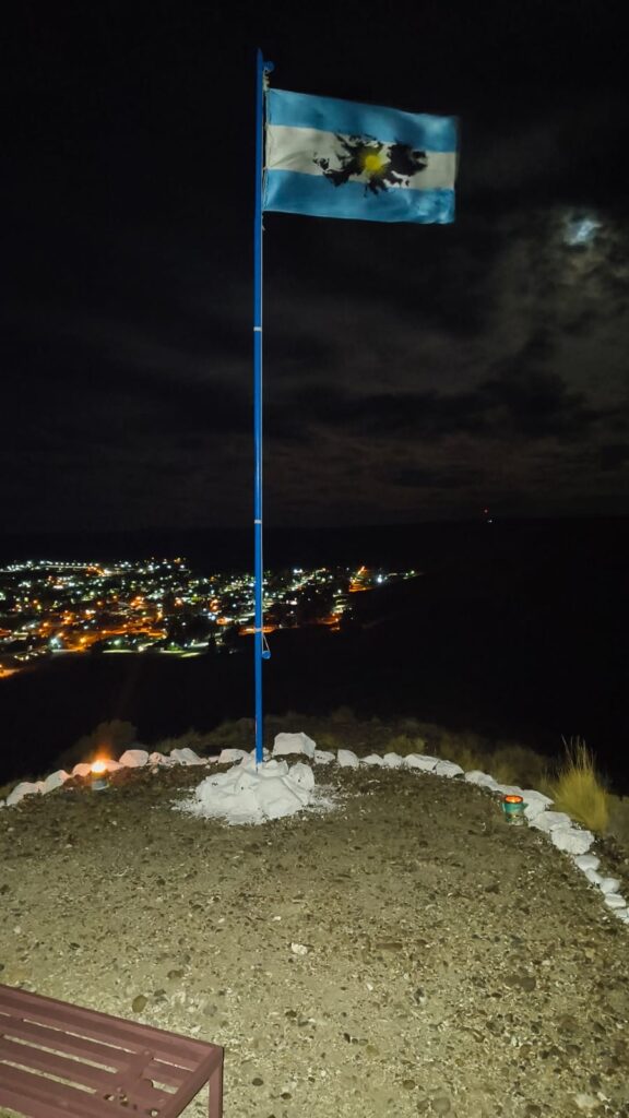 Las imágenes de la jornada reflejan con claridad el clima vivido: la bandera argentina iluminada por la luna sobre el valle, el izamiento en la medianoche, el cartel del mirador construido por los propios vecinos y la presencia del excombatiente en un espacio que ya forma parte de la identidad local. Cada escena sintetiza el sentido de una vigilia que no necesitó grandes estructuras para ser significativa.